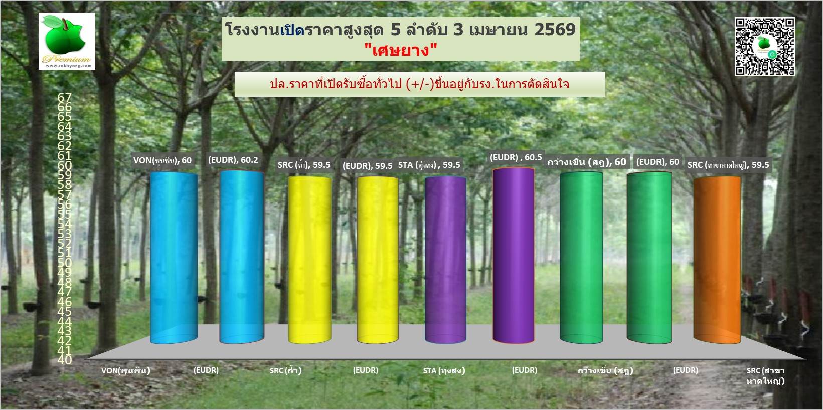 สรุปราคายางแผ่นรม/ดิบ เศษยาง เครฟ โรงงานทั่วไปประจำวัน ศุกร์ ที่ 3  เมษายน  2569